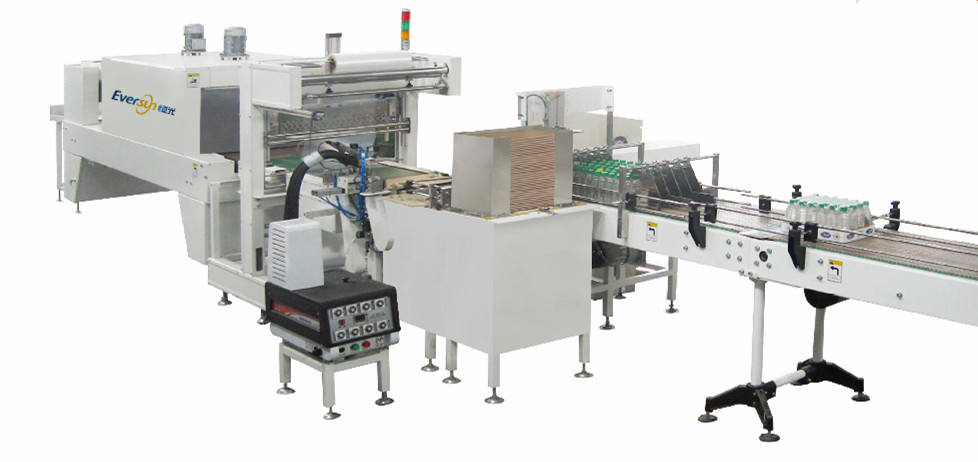1 設備具有自動送墊板,自動整理上托,紙托成行,自動套膜收縮等功能